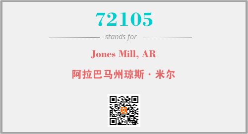 上述内容是“Jones Mill, AR”作为“72105”的缩写,解释为“阿拉巴马州琼斯·米尔”时的信息,以及英文缩略词72105所代表的英文单词,其对应的中文拼音、详细解释以及在英文中的流行度和相关分类、应用领域及应用示例等。