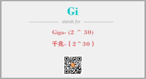 英文缩略词“Gi”经常作为“Giga- (2 ^ 30)”的英文缩写来使用,中文表示:“千兆-(2^30)”。本文将详细介绍英文缩写词Gi所代表英文单词,其对应的中文拼音、详细解释以及在英语中的流行度。此外,还有关于缩略词Gi的分类、应用领域及相关应用示例等。