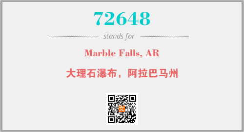 上述内容是“Marble Falls, AR”作为“72648”的缩写,解释为“大理石瀑布,阿拉巴马州”时的信息,以及英文缩略词72648所代表的英文单词,其对应的中文拼音、详细解释以及在英文中的流行度和相关分类、应用领域及应用示例等。