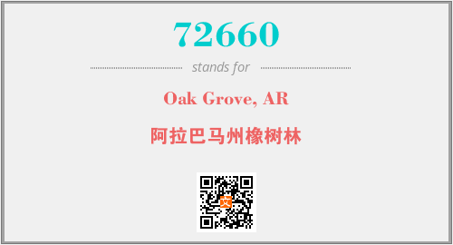 上述内容是“Oak Grove, AR”作为“72660”的缩写,解释为“阿拉巴马州橡树林”时的信息,以及英文缩略词72660所代表的英文单词,其对应的中文拼音、详细解释以及在英文中的流行度和相关分类、应用领域及应用示例等。