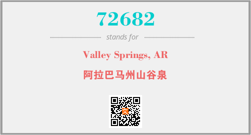 上述内容是“Valley Springs, AR”作为“72682”的缩写,解释为“阿拉巴马州山谷泉”时的信息,以及英文缩略词72682所代表的英文单词,其对应的中文拼音、详细解释以及在英文中的流行度和相关分类、应用领域及应用示例等。