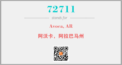 上述内容是“Avoca, AR”作为“72711”的缩写,解释为“阿沃卡,阿拉巴马州”时的信息,以及英文缩略词72711所代表的英文单词,其对应的中文拼音、详细解释以及在英文中的流行度和相关分类、应用领域及应用示例等。