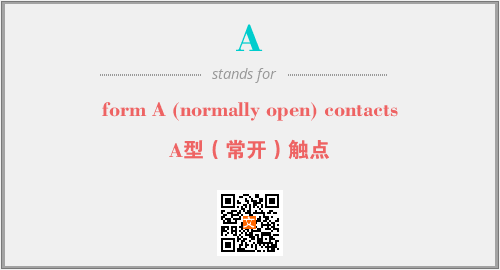英文缩略词“A”经常作为“form A (normally open) contacts”的英文缩写来使用,中文表示:“A型(常开)触点”。本文将详细介绍英文缩写词A所代表英文单词,其对应的中文拼音、详细解释以及在英语中的流行度。此外,还有关于缩略词A的分类、应用领域及相关应用示例等。