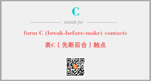 上述内容是“form C (break-before-make) contacts”作为“C”的缩写,解释为“表C(先断后合)触点”时的信息,以及英文缩略词C所代表的英文单词,其对应的中文拼音、详细解释以及在英文中的流行度和相关分类、应用领域及应用示例等。