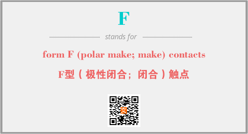 上述内容是“form F (polar make; make) contacts”作为“F”的缩写,解释为“F型(极性闭合;闭合)触点”时的信息,以及英文缩略词F所代表的英文单词,其对应的中文拼音、详细解释以及在英文中的流行度和相关分类、应用领域及应用示例等。