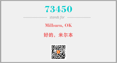 上述内容是“Milburn, OK”作为“73450”的缩写,解释为“好的,米尔本”时的信息,以及英文缩略词73450所代表的英文单词,其对应的中文拼音、详细解释以及在英文中的流行度和相关分类、应用领域及应用示例等。