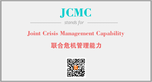 英文缩略词“JCMC”经常作为“Joint Crisis Management Capability”的英文缩写来使用,中文表示:“联合危机管理能力”。本文将详细介绍英文缩写词JCMC所代表英文单词,其对应的中文拼音、详细解释以及在英语中的流行度。此外,还有关于缩略词JCMC的分类、应用领域及相关应用示例等。