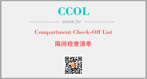 英文缩略词“CCOL”经常作为“Compartment Check-Off List”的英文缩写来使用,中文表示:“隔间检查清单”。本文将详细介绍英文缩写词CCOL所代表英文单词,其对应的中文拼音、详细解释以及在英语中的流行度。此外,还有关于缩略词CCOL的分类、应用领域及相关应用示例等。