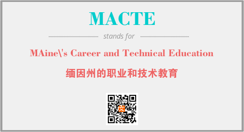 英文缩略词“MACTE”经常作为“MAine\'s Career and Technical Education”的英文缩写来使用,中文表示:“缅因州的职业和技术教育”。本文将详细介绍英文缩写词MACTE所代表英文单词,其对应的中文拼音、详细解释以及在英语中的流行度。此外,还有关于缩略词MACTE的分类、应用领域及相关应用示例等。