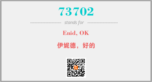 上述内容是“Enid, OK”作为“73702”的缩写,解释为“伊妮德,好的”时的信息,以及英文缩略词73702所代表的英文单词,其对应的中文拼音、详细解释以及在英文中的流行度和相关分类、应用领域及应用示例等。