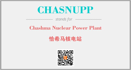 英文缩略词“CHASNUPP”经常作为“Chashma Nuclear Power Plant”的英文缩写来使用,中文表示:“恰希马核电站”。本文将详细介绍英文缩写词CHASNUPP所代表英文单词,其对应的中文拼音、详细解释以及在英语中的流行度。此外,还有关于缩略词CHASNUPP的分类、应用领域及相关应用示例等。