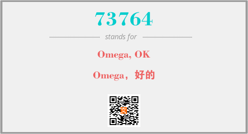 上述内容是“Omega, OK”作为“73764”的缩写,解释为“Omega,好的”时的信息,以及英文缩略词73764所代表的英文单词,其对应的中文拼音、详细解释以及在英文中的流行度和相关分类、应用领域及应用示例等。