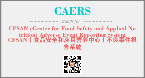 上述内容是“CFSAN (Center for Food Safety and Applied Nutrition) Adverse Event Reporting System”作为“CAERS”的缩写,解释为“CFSAN(食品安全和应用营养中心)不良事件报告系统”时的信息,以及英文缩略词CAERS所代表的英文单词,其对应的中文拼音、详细解释以及在英文中的流行度和相关分类、应用领域及应用示例等。
