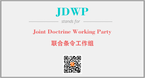 英文缩略词“JDWP”经常作为“Joint Doctrine Working Party”的英文缩写来使用,中文表示:“联合条令工作组”。本文将详细介绍英文缩写词JDWP所代表英文单词,其对应的中文拼音、详细解释以及在英语中的流行度。此外,还有关于缩略词JDWP的分类、应用领域及相关应用示例等。