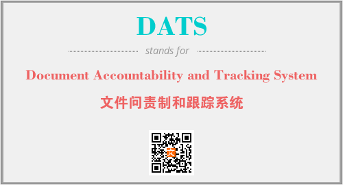 英文缩略词“DATS”经常作为“Document Accountability and Tracking System”的英文缩写来使用,中文表示:“文件问责制和跟踪系统”。本文将详细介绍英文缩写词DATS所代表英文单词,其对应的中文拼音、详细解释以及在英语中的流行度。此外,还有关于缩略词DATS的分类、应用领域及相关应用示例等。