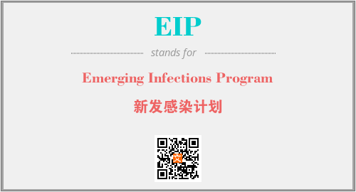 英文缩略词“EIP”经常作为“Emerging Infections Program”的英文缩写来使用,中文表示:“新发感染计划”。本文将详细介绍英文缩写词EIP所代表英文单词,其对应的中文拼音、详细解释以及在英语中的流行度。此外,还有关于缩略词EIP的分类、应用领域及相关应用示例等。