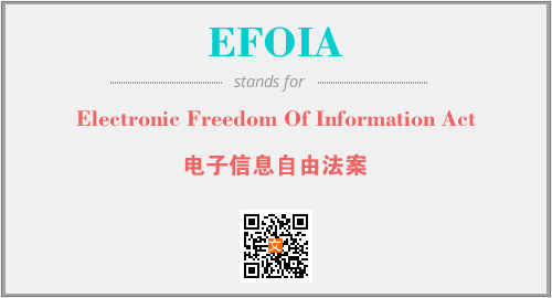 上述内容是“Electronic Freedom Of Information Act”作为“EFOIA”的缩写,解释为“电子信息自由法案”时的信息,以及英文缩略词EFOIA所代表的英文单词,其对应的中文拼音、详细解释以及在英文中的流行度和相关分类、应用领域及应用示例等。