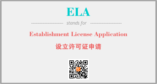 上述内容是“Establishment License Application”作为“ELA”的缩写,解释为“设立许可证申请”时的信息,以及英文缩略词ELA所代表的英文单词,其对应的中文拼音、详细解释以及在英文中的流行度和相关分类、应用领域及应用示例等。