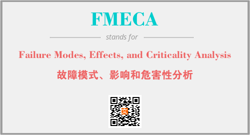 上述内容是“Failure Modes, Effects, and Criticality Analysis”作为“FMECA”的缩写,解释为“故障模式、影响和危害性分析”时的信息,以及英文缩略词FMECA所代表的英文单词,其对应的中文拼音、详细解释以及在英文中的流行度和相关分类、应用领域及应用示例等。