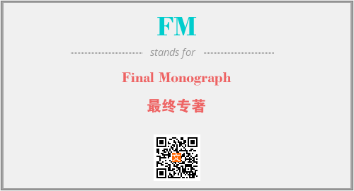 英文缩略词“FM”经常作为“Final Monograph”的英文缩写来使用,中文表示:“最终专著”。本文将详细介绍英文缩写词FM所代表英文单词,其对应的中文拼音、详细解释以及在英语中的流行度。此外,还有关于缩略词FM的分类、应用领域及相关应用示例等。