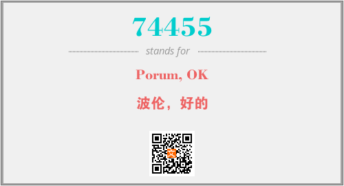 上述内容是“Porum, OK”作为“74455”的缩写,解释为“波伦,好的”时的信息,以及英文缩略词74455所代表的英文单词,其对应的中文拼音、详细解释以及在英文中的流行度和相关分类、应用领域及应用示例等。