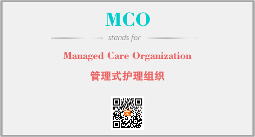 上述内容是“Managed Care Organization”作为“MCO”的缩写,解释为“管理式护理组织”时的信息,以及英文缩略词MCO所代表的英文单词,其对应的中文拼音、详细解释以及在英文中的流行度和相关分类、应用领域及应用示例等。