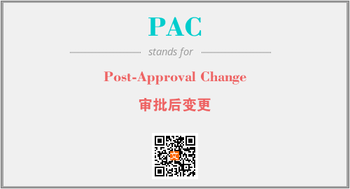 上述内容是“Post-Approval Change”作为“PAC”的缩写,解释为“审批后变更”时的信息,以及英文缩略词PAC所代表的英文单词,其对应的中文拼音、详细解释以及在英文中的流行度和相关分类、应用领域及应用示例等。