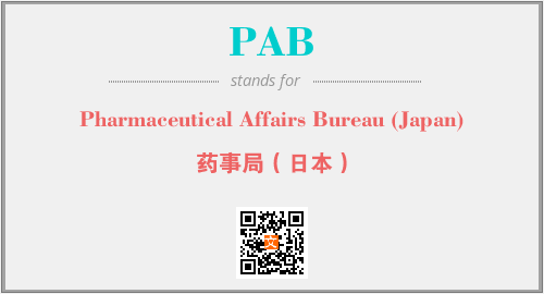 英文缩略词“PAB”经常作为“Pharmaceutical Affairs Bureau (Japan)”的英文缩写来使用,中文表示:“药事局(日本)”。本文将详细介绍英文缩写词PAB所代表英文单词,其对应的中文拼音、详细解释以及在英语中的流行度。此外,还有关于缩略词PAB的分类、应用领域及相关应用示例等。