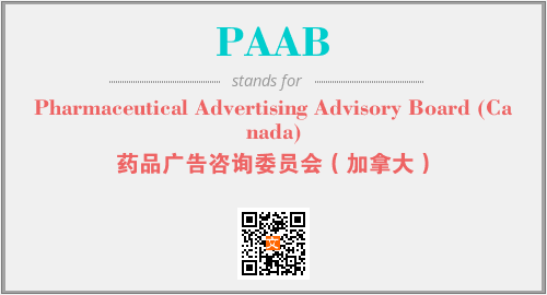 上述内容是“Pharmaceutical Advertising Advisory Board (Canada)”作为“PAAB”的缩写,解释为“药品广告咨询委员会(加拿大)”时的信息,以及英文缩略词PAAB所代表的英文单词,其对应的中文拼音、详细解释以及在英文中的流行度和相关分类、应用领域及应用示例等。