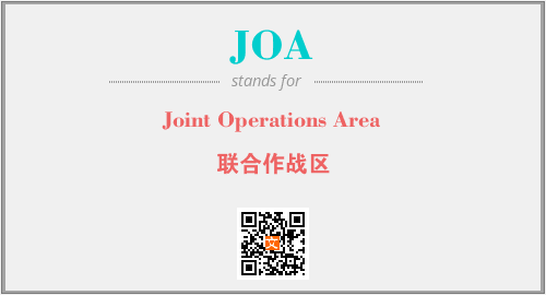 英文缩略词“JOA”经常作为“Joint Operations Area”的英文缩写来使用,中文表示:“联合作战区”。本文将详细介绍英文缩写词JOA所代表英文单词,其对应的中文拼音、详细解释以及在英语中的流行度。此外,还有关于缩略词JOA的分类、应用领域及相关应用示例等。