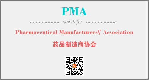 英文缩略词“PMA”经常作为“Pharmaceutical Manufacturers\' Association”的英文缩写来使用,中文表示:“药品制造商协会”。本文将详细介绍英文缩写词PMA所代表英文单词,其对应的中文拼音、详细解释以及在英语中的流行度。此外,还有关于缩略词PMA的分类、应用领域及相关应用示例等。