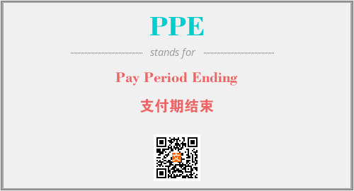 英文缩略词“PPE”经常作为“Pay Period Ending”的英文缩写来使用,中文表示:“支付期结束”。本文将详细介绍英文缩写词PPE所代表英文单词,其对应的中文拼音、详细解释以及在英语中的流行度。此外,还有关于缩略词PPE的分类、应用领域及相关应用示例等。