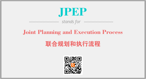 上述内容是“Joint Planning and Execution Process”作为“JPEP”的缩写,解释为“联合规划和执行流程”时的信息,以及英文缩略词JPEP所代表的英文单词,其对应的中文拼音、详细解释以及在英文中的流行度和相关分类、应用领域及应用示例等。