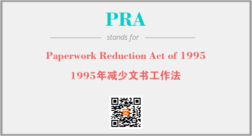 上述内容是“Paperwork Reduction Act of 1995”作为“PRA”的缩写,解释为“1995年减少文书工作法”时的信息,以及英文缩略词PRA所代表的英文单词,其对应的中文拼音、详细解释以及在英文中的流行度和相关分类、应用领域及应用示例等。