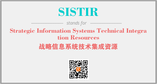 上述内容是“Strategic Information Systems Technical Integration Resources”作为“SISTIR”的缩写,解释为“战略信息系统技术集成资源”时的信息,以及英文缩略词SISTIR所代表的英文单词,其对应的中文拼音、详细解释以及在英文中的流行度和相关分类、应用领域及应用示例等。