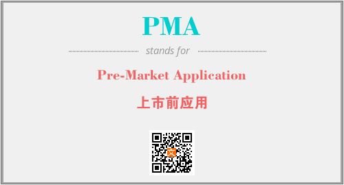 上述内容是“Pre-Market Application”作为“PMA”的缩写,解释为“上市前应用”时的信息,以及英文缩略词PMA所代表的英文单词,其对应的中文拼音、详细解释以及在英文中的流行度和相关分类、应用领域及应用示例等。