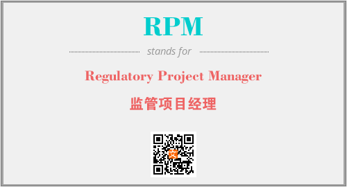 上述内容是“Regulatory Project Manager”作为“RPM”的缩写,解释为“监管项目经理”时的信息,以及英文缩略词RPM所代表的英文单词,其对应的中文拼音、详细解释以及在英文中的流行度和相关分类、应用领域及应用示例等。