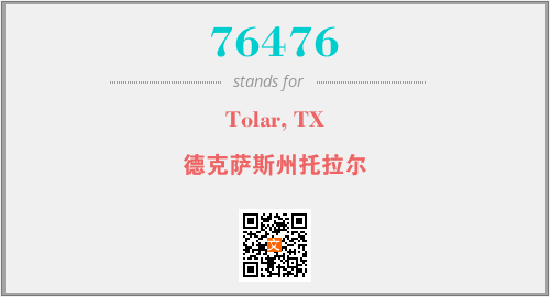 上述内容是“Tolar, TX”作为“76476”的缩写,解释为“德克萨斯州托拉尔”时的信息,以及英文缩略词76476所代表的英文单词,其对应的中文拼音、详细解释以及在英文中的流行度和相关分类、应用领域及应用示例等。