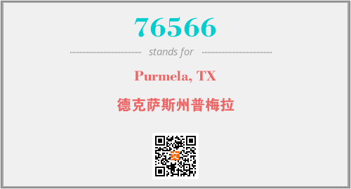 上述内容是“Purmela, TX”作为“76566”的缩写,解释为“德克萨斯州普梅拉”时的信息,以及英文缩略词76566所代表的英文单词,其对应的中文拼音、详细解释以及在英文中的流行度和相关分类、应用领域及应用示例等。