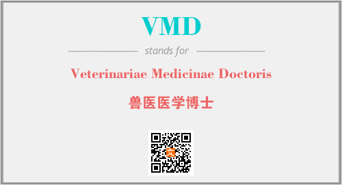 英文缩略词“VMD”经常作为“Veterinariae Medicinae Doctoris”的英文缩写来使用,中文表示:“兽医医学博士”。本文将详细介绍英文缩写词VMD所代表英文单词,其对应的中文拼音、详细解释以及在英语中的流行度。此外,还有关于缩略词VMD的分类、应用领域及相关应用示例等。