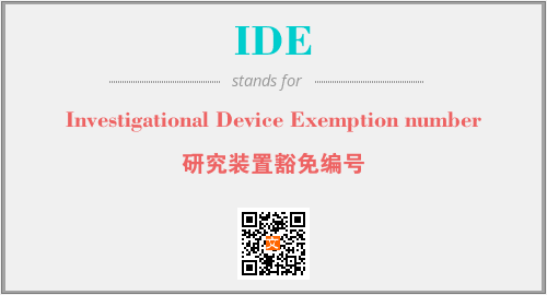 上述内容是“Investigational Device Exemption number”作为“IDE”的缩写,解释为“研究装置豁免编号”时的信息,以及英文缩略词IDE所代表的英文单词,其对应的中文拼音、详细解释以及在英文中的流行度和相关分类、应用领域及应用示例等。
