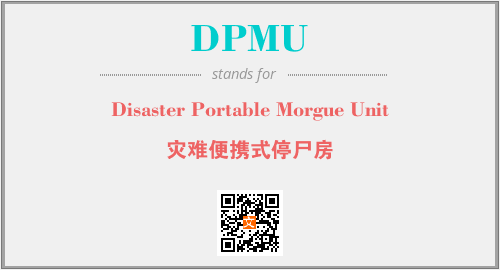 上述内容是“Disaster Portable Morgue Unit”作为“DPMU”的缩写,解释为“灾难便携式停尸房”时的信息,以及英文缩略词DPMU所代表的英文单词,其对应的中文拼音、详细解释以及在英文中的流行度和相关分类、应用领域及应用示例等。