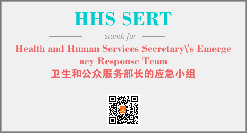 上述内容是“Health and Human Services Secretary\'s Emergency Response Team”作为“HHS SERT”的缩写,解释为“卫生和公众服务部长的应急小组”时的信息,以及英文缩略词HHS SERT所代表的英文单词,其对应的中文拼音、详细解释以及在英文中的流行度和相关分类、应用领域及应用示例等。