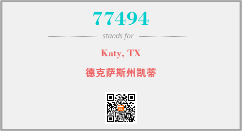上述内容是“Katy, TX”作为“77494”的缩写,解释为“德克萨斯州凯蒂”时的信息,以及英文缩略词77494所代表的英文单词,其对应的中文拼音、详细解释以及在英文中的流行度和相关分类、应用领域及应用示例等。
