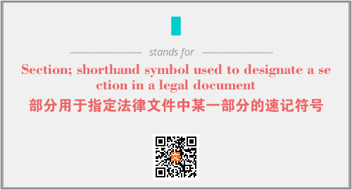 上述内容是“Section; shorthand symbol used to designate a section in a legal document”作为“ᄃ”的缩写,解释为“部分用于指定法律文件中某一部分的速记符号”时的信息,以及英文缩略词ᄃ所代表的英文单词,其对应的中文拼音、详细解释以及在英文中的流行度和相关分类、应用领域及应用示例等。