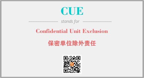 上述内容是“Confidential Unit Exclusion”作为“CUE”的缩写,解释为“保密单位除外责任”时的信息,以及英文缩略词CUE所代表的英文单词,其对应的中文拼音、详细解释以及在英文中的流行度和相关分类、应用领域及应用示例等。