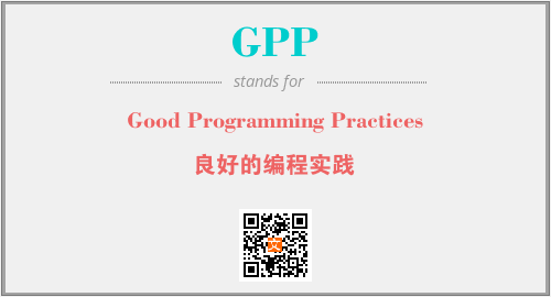 英文缩略词“GPP”经常作为“Good Programming Practices”的英文缩写来使用,中文表示:“良好的编程实践”。本文将详细介绍英文缩写词GPP所代表英文单词,其对应的中文拼音、详细解释以及在英语中的流行度。此外,还有关于缩略词GPP的分类、应用领域及相关应用示例等。