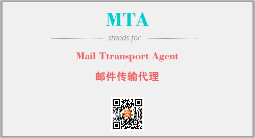 英文缩略词“MTA”经常作为“Mail Ttransport Agent”的英文缩写来使用,中文表示:“邮件传输代理”。本文将详细介绍英文缩写词MTA所代表英文单词,其对应的中文拼音、详细解释以及在英语中的流行度。此外,还有关于缩略词MTA的分类、应用领域及相关应用示例等。