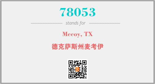 上述内容是“Mccoy, TX”作为“78053”的缩写,解释为“德克萨斯州麦考伊”时的信息,以及英文缩略词78053所代表的英文单词,其对应的中文拼音、详细解释以及在英文中的流行度和相关分类、应用领域及应用示例等。
