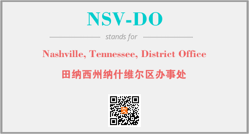 上述内容是“Nashville, Tennessee, District Office”作为“NSV-DO”的缩写,解释为“田纳西州纳什维尔区办事处”时的信息,以及英文缩略词NSV-DO所代表的英文单词,其对应的中文拼音、详细解释以及在英文中的流行度和相关分类、应用领域及应用示例等。